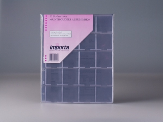 Set à 10 bladen ( 240 x 300 mm ) voor munthoudersalbum MH20 ( formaat 280 x 315 mm ), 20 munthouders per blad ( 50 x 50 mm )